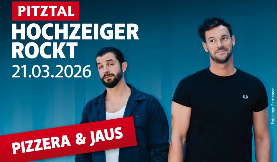 Am Samstag, 21. März 2026, verwandelt sich das Hochzeiger Skigebiet im Pitztal in eine einzigartige Open-Air-Bühne. Pizzera & Jaus sorgen mitten im Skigebiet für hochkarätige Live-Musik – umgeben von verschneiten Bergen und echter Festivalatmosphäre.