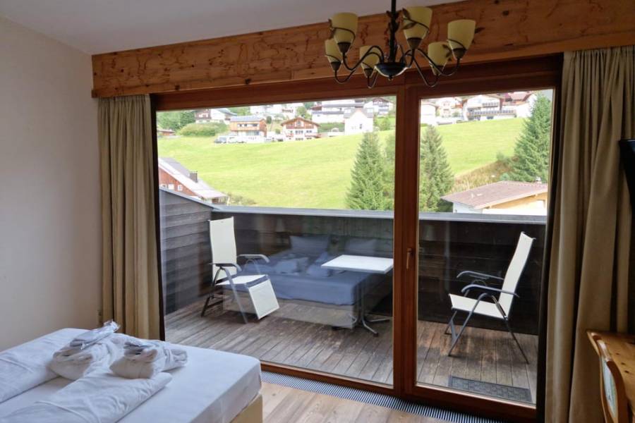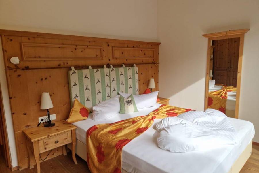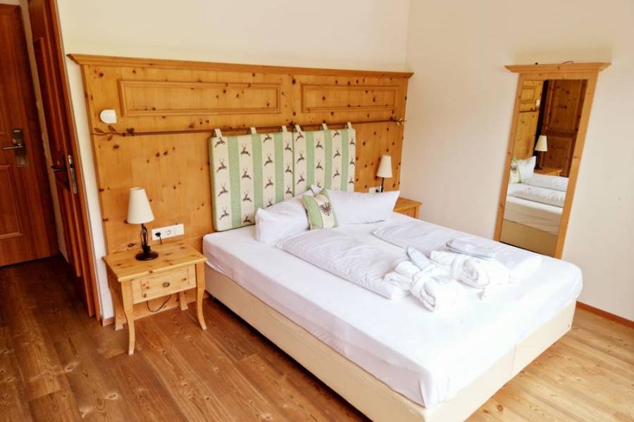 Geräumiges Doppelzimmer mit 21 m2 im modernen, alpenländischen Stil mit Zirben- und hellem Lärchenholz eingerichtet. Ausgestattet mit Dusche, Doppelwaschbecken und WC, Sat-TV, kostenloser WLAN Zugang, Telefon, Safe, Schreibtisch, Panoramafenster und geräumiger