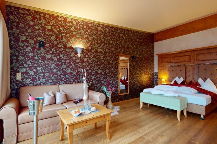 - Use of our rock SPA with outdoor pine sauna , including panoramic views, herbal steam bath, organic/rock sauna, steam grotto, adventure showers, relaxation room and sun terrace as well as wellness bar with refreshing mountain spring water